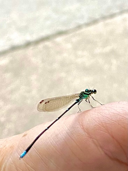 イトトンボ。手を出すと静かに止まってくれた。